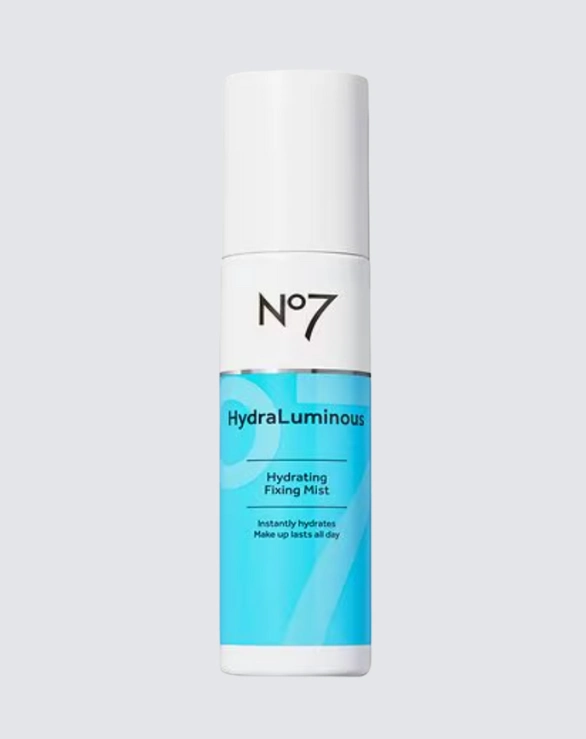 - No7 HydraLuminous Hydrating Fixing Mist – Hidrata y también actúa como fijador de maquillaje, ofreciendo doble beneficio.